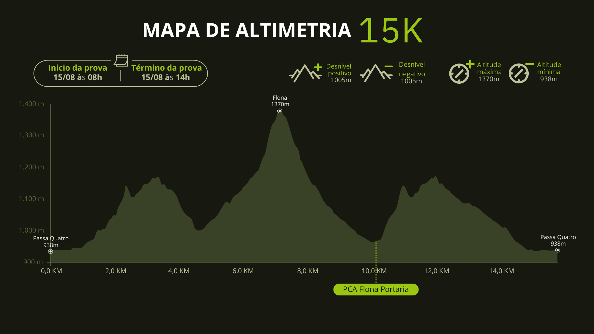 O desafio é completar os 15km dentro do tempo limite de 6 horas e seguir as demais regras do evento.